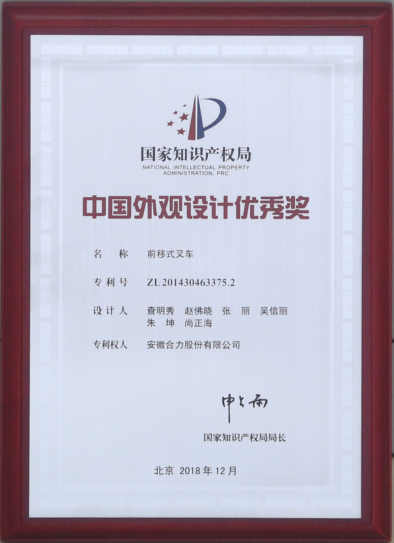 2018 安徽省科學(xué)技術(shù)獎(jiǎng)三等獎(jiǎng) H3系列1-3.5噸內(nèi)燃平衡重式叉車
